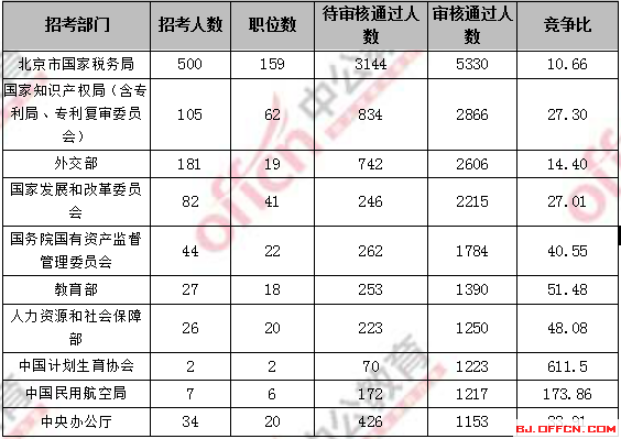 一、北京地區(qū)招錄大戶——國稅 競爭比11:1