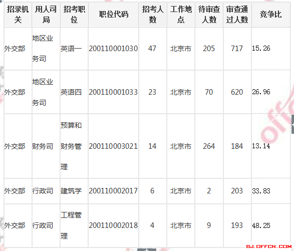 外交部審查通過最多前五職位