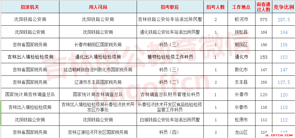 [截至11月3日16時(shí)]2018國考報(bào)名人數(shù)統(tǒng)計(jì):吉林11421人過審 最熱職位287.5:1