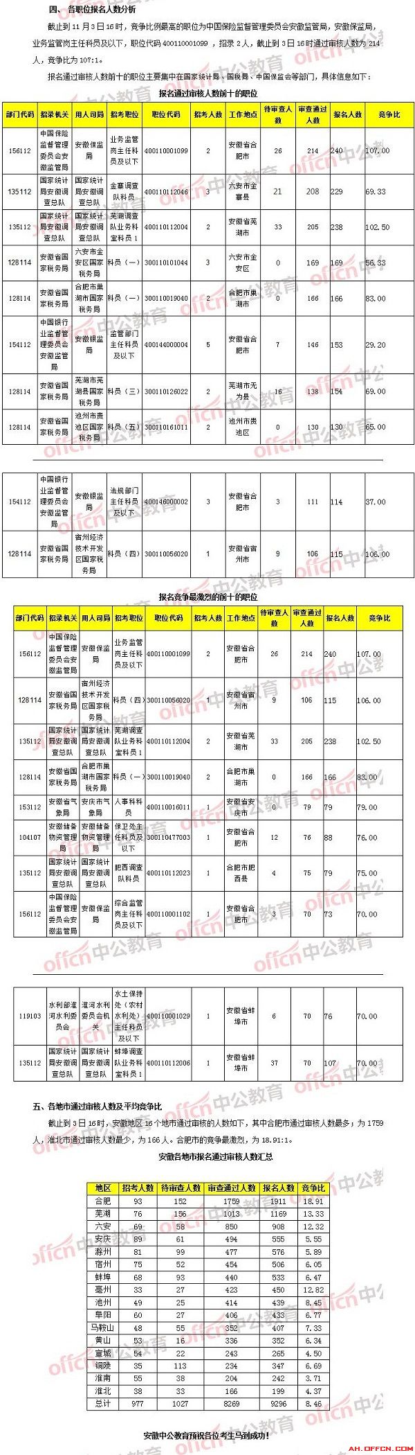 【11月3日16時】2018國考報名人數(shù)統(tǒng)計:安徽8269人通過審核,最熱職位107:1