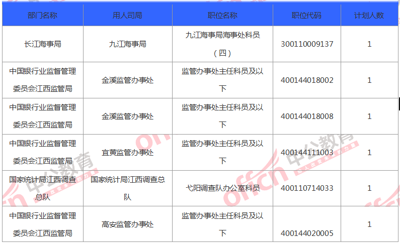 截止到3日16時(shí),工作地點(diǎn)在江西的職位只有8個(gè)無(wú)人報(bào)考,僅占全部職位的2%。下面是無(wú)人報(bào)考職位一覽表,中公教育專家建議廣大考生多關(guān)注一些較冷職位,避免激烈競(jìng)爭(zhēng),結(jié)合自身?xiàng)l件,找到屬于自己的職位。