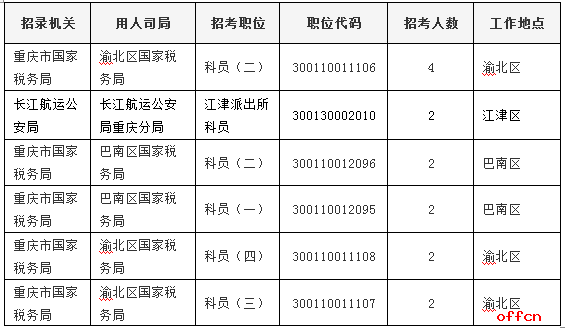 截止到11月3日16時,工作地點在重慶的職位共有18個無人報考,占全部職位的7.6%。下面是無人報考職位招錄人數(shù)較多的職位一覽表,中公網(wǎng)校專家建議廣大考生多關注一些較冷職位,避免激烈競爭,結(jié)合自身條件,找到屬于自己的職位。