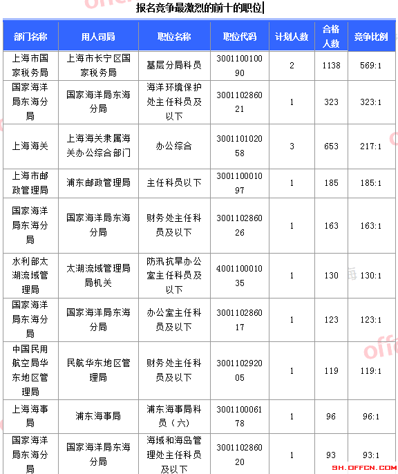 [4日9時]2018國考報名數(shù)據(jù):上海10537人過審 最熱職位569:1