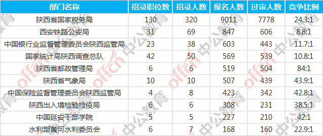 截至到4日9時(shí),通過(guò)審核人數(shù)前三位的部門依次是:陜西省國(guó)家稅務(wù)局、西安鐵路公安局、國(guó)家統(tǒng)計(jì)局陜西調(diào)查總隊(duì),三部門通過(guò)審核總?cè)藬?shù)達(dá)8923人,占通過(guò)審核總?cè)藬?shù)的77.6%。