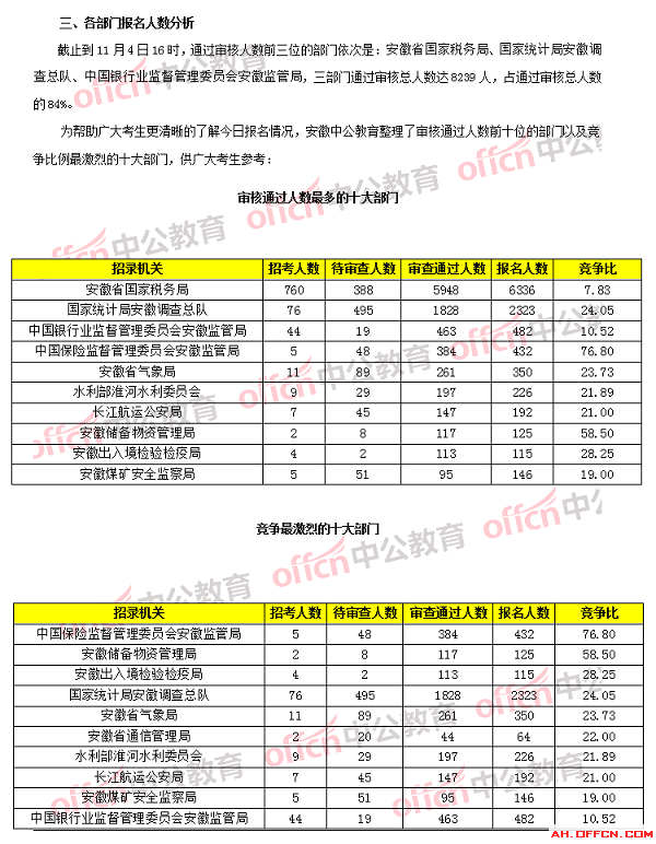 【11月4日16時】2018國考報名人數(shù)統(tǒng)計:安徽9787人通過審核,最熱職位122:1