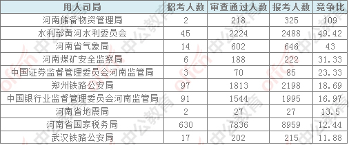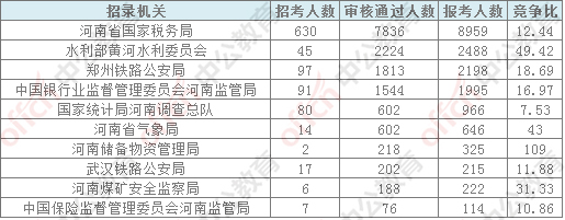 截止到11月4日16時(shí),通過(guò)審核人數(shù)前三位的部門依次是:河南省國(guó)家稅務(wù)局、水利部黃河水利委員會(huì)、鄭州鐵路公安局,三部門通過(guò)審核總?cè)藬?shù)達(dá)11873人,占通過(guò)審核總?cè)藬?shù)的77.58%。