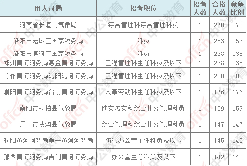 截止到11月4日16時,競爭比例的職位為河南省長垣縣氣象局的綜合管理科綜合管理科員一職位,招錄1人,截止到11月4日16時通過人數(shù)為270人,仍有10個人還在審核中。