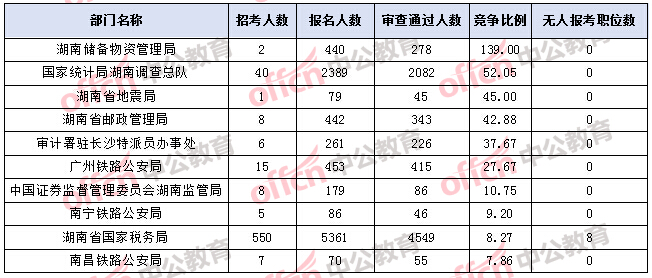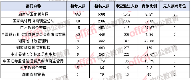 湖南國(guó)考報(bào)名人數(shù)最多的十大部門(mén)