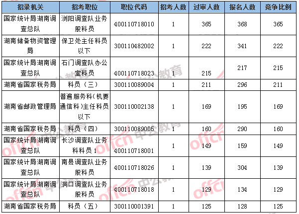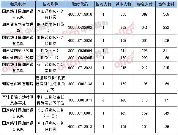 湖南國(guó)考報(bào)名競(jìng)爭(zhēng)最激烈的前十的職位