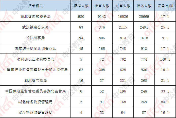 湖北過(guò)審人數(shù)最多的十大部門(mén)
