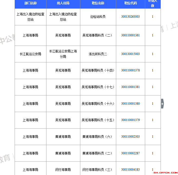截止到4日16時,工作地點在上海的職位共有29個無人報考,占全部職位的7.5%。下面是無人報考職位一覽表,中公教育專家建議廣大考生多關注一些較冷職位,避免激烈競爭,結合自身條件,找到屬于自己的職位。