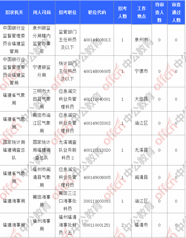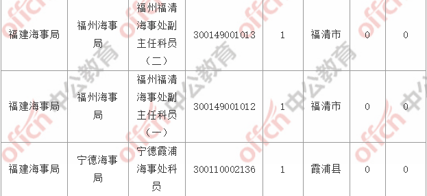 截止到5日16時,工作地點在福建的職位共有11個無人報考,占全部職位的4.97%。下面是無人報考職位一覽表,中公網(wǎng)校專家建議廣大考生多關(guān)注一些較冷職位,避免激烈競爭,結(jié)合自身條件,找到屬于自己的職位。