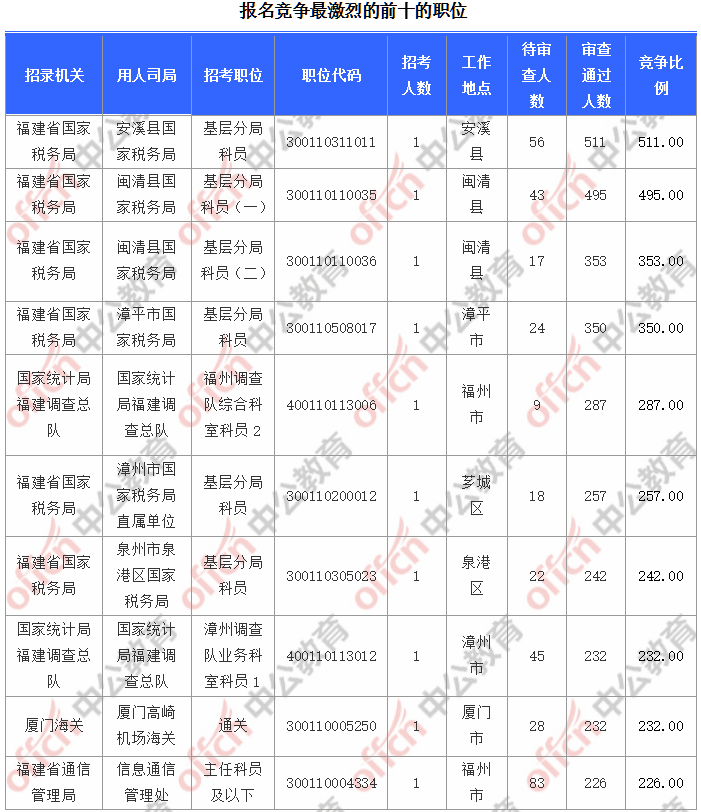 [11月5日16時]2018國考報名人數(shù)統(tǒng)計:福建報名13829人,最熱職位511:1