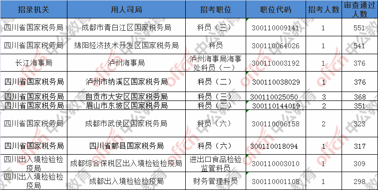 第六日?qǐng)?bào)名通過(guò)審核人數(shù)前十的職位主要集四川省國(guó)家稅務(wù)局等部門(mén),具體信息如下: