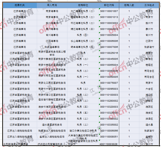 截止到3日16時,工作地點在江蘇的職位共有23個無人報考,占全部職位的1.9%。下面是無人報考職位一覽表,中公網(wǎng)校專家建議廣大考生多關(guān)注一些較冷職位,避免激烈競爭,結(jié)合自身條件,找到屬于自己的職位。