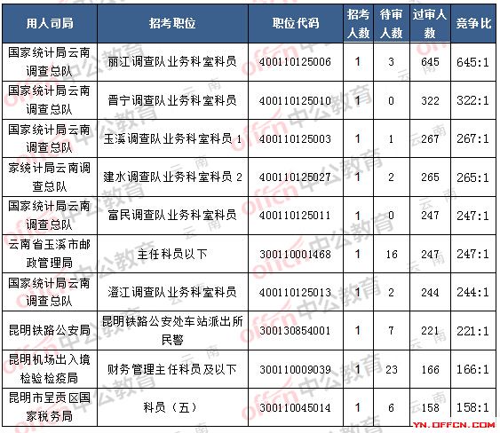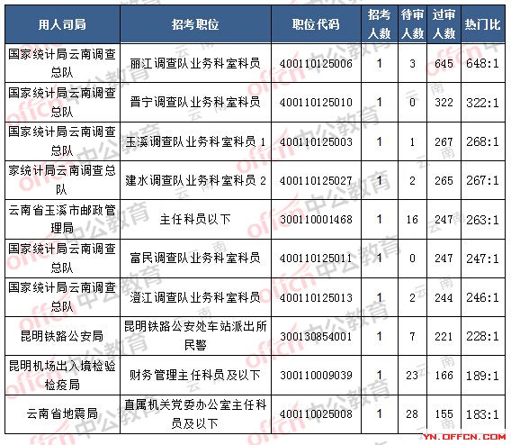 當前最受歡迎的崗位是國家統(tǒng)計局云南調查總隊,麗江調查隊業(yè)務科室科員,職位代碼:400110125006,招錄1人,648人報名,其中3人待審核通過,詳情如下圖: