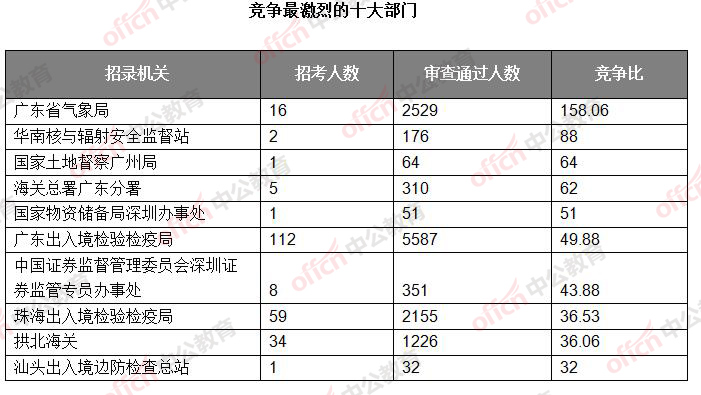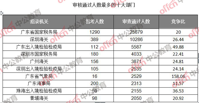 截止到5日16時(shí),通過審核人數(shù)前三位的部門依次是:廣東省國家稅務(wù)局、深圳海關(guān)、廣東出入境檢驗(yàn)檢疫局,三部門通過審核總?cè)藬?shù)達(dá)41752人,占通過審核總?cè)藬?shù)的60.0%。