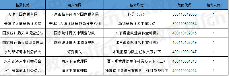 截止到6日09時(shí),工作地點(diǎn)在天津的職位共有7個(gè)無(wú)人報(bào)考,占全部職位的3.3%。下圖是無(wú)人報(bào)考職位一覽表,中公網(wǎng)校專(zhuān)家建議廣大考生多關(guān)注一些較冷職位,避免激烈競(jìng)爭(zhēng),結(jié)合自身?xiàng)l件,找到屬于自己的職位。