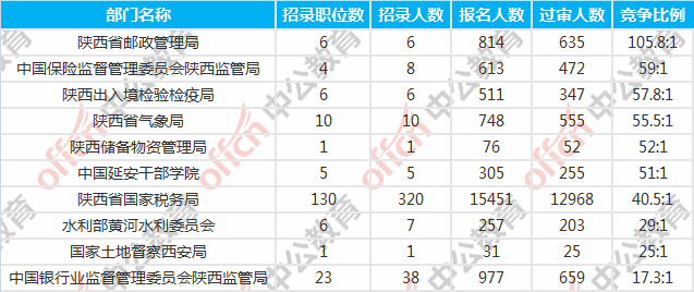 陜西國(guó)考報(bào)名人數(shù)最多的十大部門