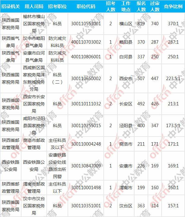 [6日9時(shí)]2018陜西國(guó)考報(bào)名人數(shù)統(tǒng)計(jì):陜西18098人過審 最熱職位370:1