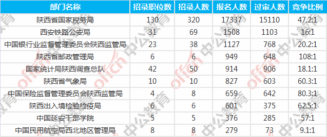 陜西國考報名人數(shù)最多的十大部門
