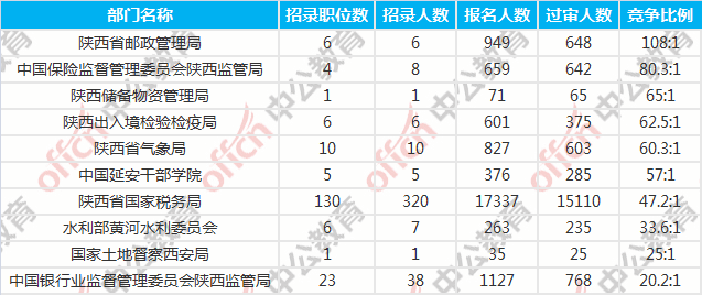 陜西國考報名競爭最激烈的十大部門