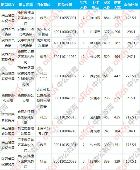 [6日16時]2018國考報名人數(shù)統(tǒng)計:陜西21043人過審 整體競爭比38:1