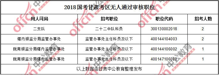 11月6日16時(shí),工作地點(diǎn)在甘肅的職位共有4個(gè)職位無(wú)人通過(guò)審核,占全部職位的1.82%,2個(gè)職位無(wú)人報(bào)考,占全部職位的0.91%。下面是無(wú)人待審及無(wú)人報(bào)報(bào)職位一覽表,中公網(wǎng)校專家建議廣大考生多關(guān)注一些較冷職位,避免激烈競(jìng)爭(zhēng),結(jié)合自身?xiàng)l件,找到屬于自己的職位。