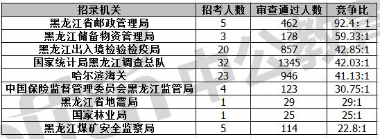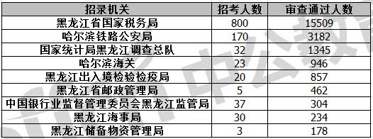 截止到11月6日16時(shí),通過審核人數(shù)前三位的部門依次是:黑龍江省國家稅務(wù)局、哈爾濱鐵路公安局、國家統(tǒng)計(jì)局黑龍江調(diào)查總隊(duì),三部門通過審核總?cè)藬?shù)達(dá)20036人,占通過審核總?cè)藬?shù)的85.19%。其中黑龍江省國稅局審核通過人數(shù),與去年同期相比增加了4381人。