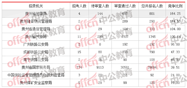 [6日16時]2018國考報名數據:貴州34838人過審 最熱職位524:1