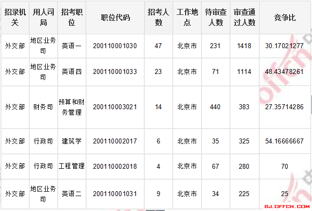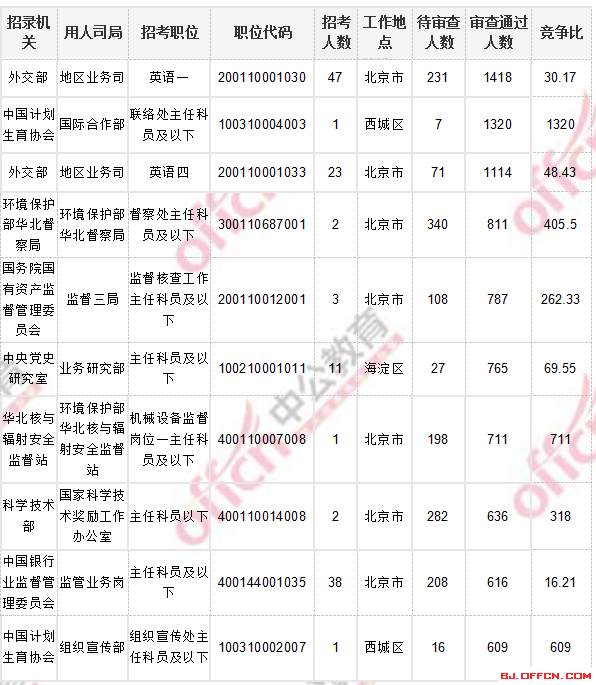 2018國考北京地區(qū)過審人數(shù)最多十大職位