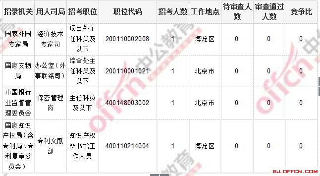2018國考北京地區(qū)無人報(bào)考職位(4個)