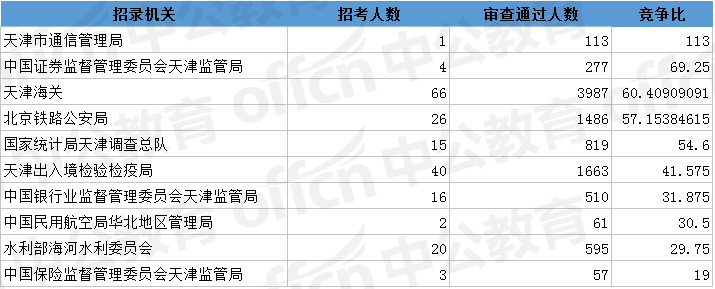 [7日16時]2018國考報名人數(shù)分析:天津12841人過審 有5個職位無人報考