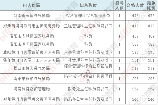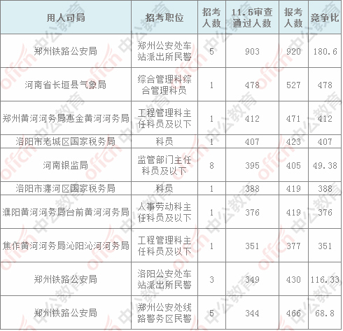報(bào)名通過(guò)審核人數(shù)前十的職位主要集中在鄭州鐵路公安局、河南省氣象局、河南省國(guó)家稅務(wù)局,具體信息如下: