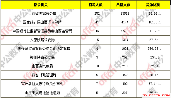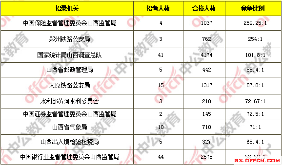 截至11月8日16時,據(jù)中公網校統(tǒng)計,國考職位中工作地點在山西的職位通過審核總人數(shù)為25795人,和昨天相比增加了6100人,與去年同期相比合格人數(shù)減少了2487人,截止目前共有5個職位無人報考,平均競爭比例為48.58:1,和去年同期競爭比增長了5.79%。