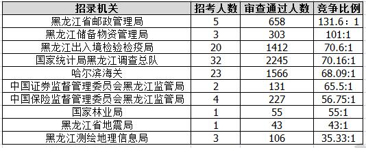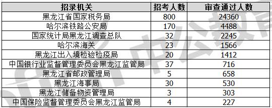 截止到11月8日16時,通過審核人數(shù)前三位的部門依次是:黑龍江省國家稅務(wù)局、哈爾濱鐵路公安局、國家統(tǒng)計(jì)局黑龍江調(diào)查總隊(duì),三部門通過審核總?cè)藬?shù)達(dá)31093人,占通過審核總?cè)藬?shù)的83.44%。其中黑龍江省國稅局審核通過人數(shù),與去年同期相比增加了7165人。