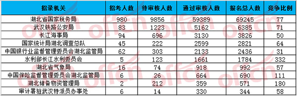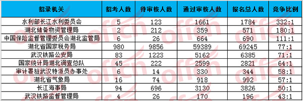 湖北報名人數(shù)最多的十大部門