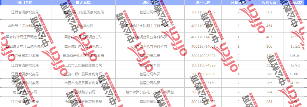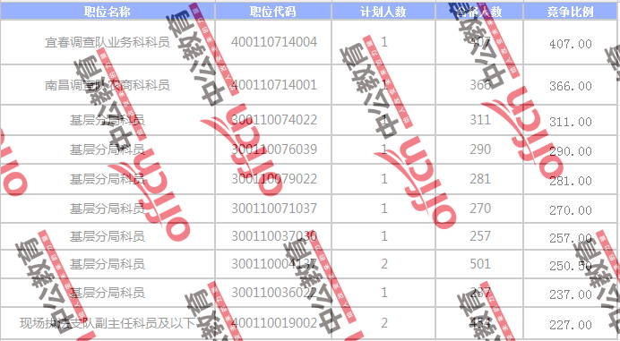 截止到8日17:30時(shí),競(jìng)爭(zhēng)比例的職位為國(guó)家統(tǒng)計(jì)局江西調(diào)查總隊(duì)國(guó)家統(tǒng)計(jì)局江西調(diào)查總隊(duì)宜春調(diào)查隊(duì)業(yè)務(wù)科科員一職,招錄1人,截止到8日17:30時(shí)通過(guò)人數(shù)為407人,競(jìng)爭(zhēng)比為407:1
