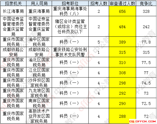 報名通過審核人數(shù)前十的職位