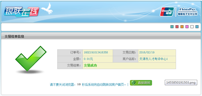 6、支付之后請等待系統(tǒng)倒計時自動返回商戶不要直接關(guān)閉交易訂單頁面。