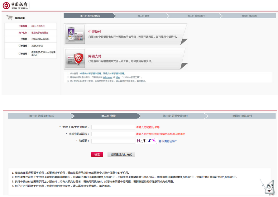 5、然后會出現(xiàn)中國銀行支付頁面,考生按銀行要求輸入相關(guān)信息進(jìn)行支付即可。