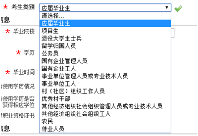 報(bào)名身份有4個(gè)選擇項(xiàng)。