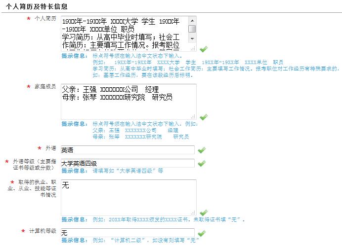 1、考生在填寫(xiě)以下信息時(shí),凡是帶有‘*’號(hào)的必須填寫(xiě)或選擇,在填寫(xiě)信息時(shí),建議考生把要填寫(xiě)內(nèi)容較多的信息先寫(xiě)到某一文本文件中(*.txt),然后再?gòu)脑撐谋局羞M(jìn)行粘貼,這樣會(huì)節(jié)省很多時(shí)間(注:使用word、網(wǎng)頁(yè)等帶格式的編輯軟件進(jìn)行編輯時(shí)有可能在提交數(shù)據(jù)時(shí)會(huì)有錯(cuò)誤)。