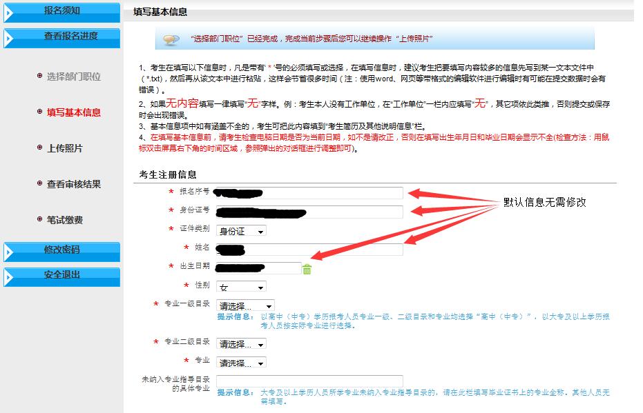 “考生注冊(cè)信息”部分已默認(rèn)填寫(xiě)完畢。