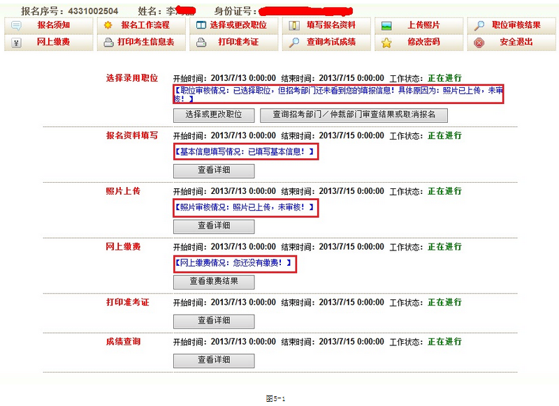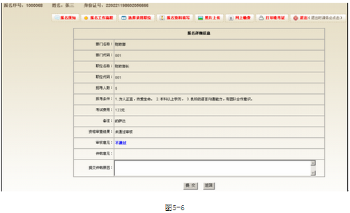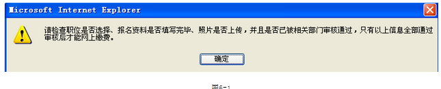 資格審核通過(guò)后,即可點(diǎn)擊‘網(wǎng)上繳費(fèi)’進(jìn)行繳費(fèi)操作,如果審核沒(méi)通過(guò)就會(huì)有圖6-1的提示。