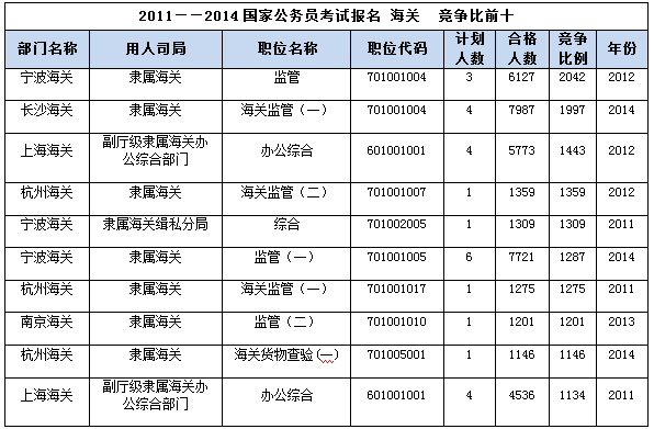 2011-2014國家公務(wù)員考試報名之最盤點:海關(guān)前十