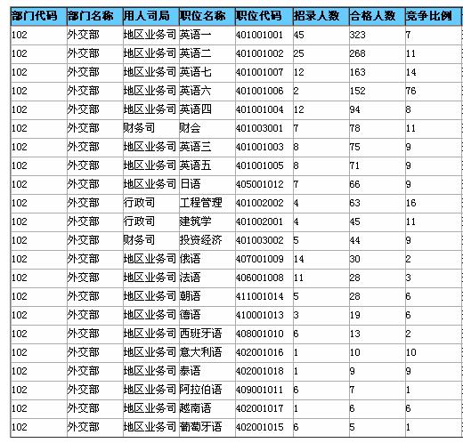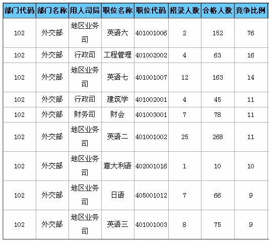 [截至17日16時(shí)]外交部競爭最激烈十大職位