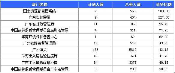 10月21日16時,2015國家公務員考試報名進入第7天。據(jù)中公教育統(tǒng)計,國考職位中工作地點在廣東的職位通過審核總?cè)藬?shù)為57427人,共有29個職位無人通過審核,平均競爭比例為27.52。考生需注意這并不是最終的報名人數(shù),審核時間是截至2014年10月26日18:00。