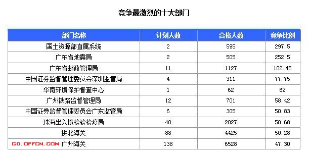 為幫助廣大考生更清晰的了解今日報名情況,中公教育整理了審核通過人數(shù)前十位的部門以及競爭比例最激烈的十大部門,供廣大考生參考: