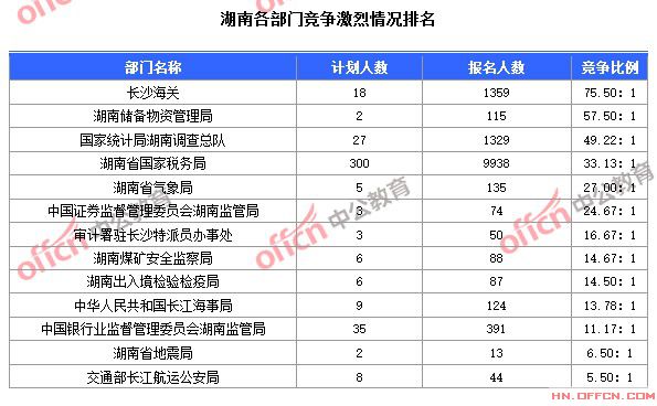 截至22日8時(shí),競(jìng)爭(zhēng)最熱部門為“長(zhǎng)沙海關(guān)”,競(jìng)爭(zhēng)比例為75.5:1。